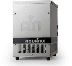 Vapors return to liquid as they pass through a condenser column, which is actively cooled using an external water pump.