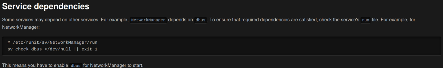 status is lacking (just like the others), and the service files themselves are bash scripts, with all the command parsing with the individual services themselves, instead where it should be, with the init system. I do not want to even see this thing, ever.