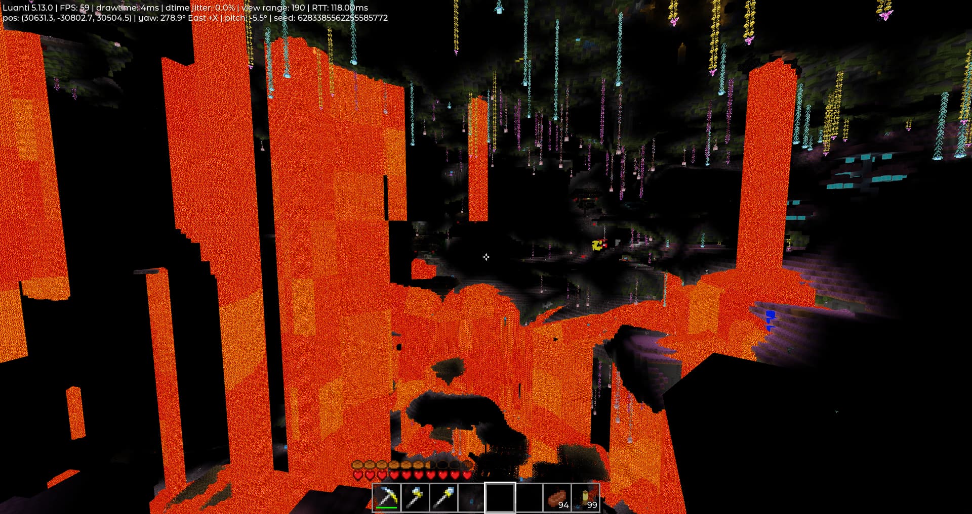 I’ve noticed several large lava flows like this in Asuna. They can be cool, but I do think the lava needs a reskin. Has anyone tried one of the texture packs from contentdb?
